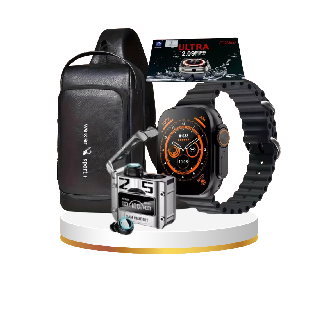 COMBO BOLSO ANTIROBO + SMART WATCH T10 ULTRA + AUDIFONO M25